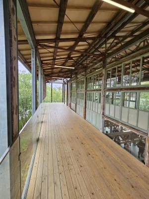 パビリオンは、古い学校の廃校舎を移築したもの。