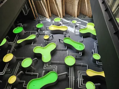 無意味な演出と、広い面積のわりに、間延びした展示=効率が悪い。