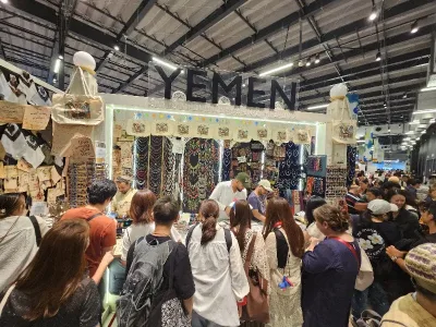 黄色と青色の国旗色が鮮やかな展示スペースを作っていました。